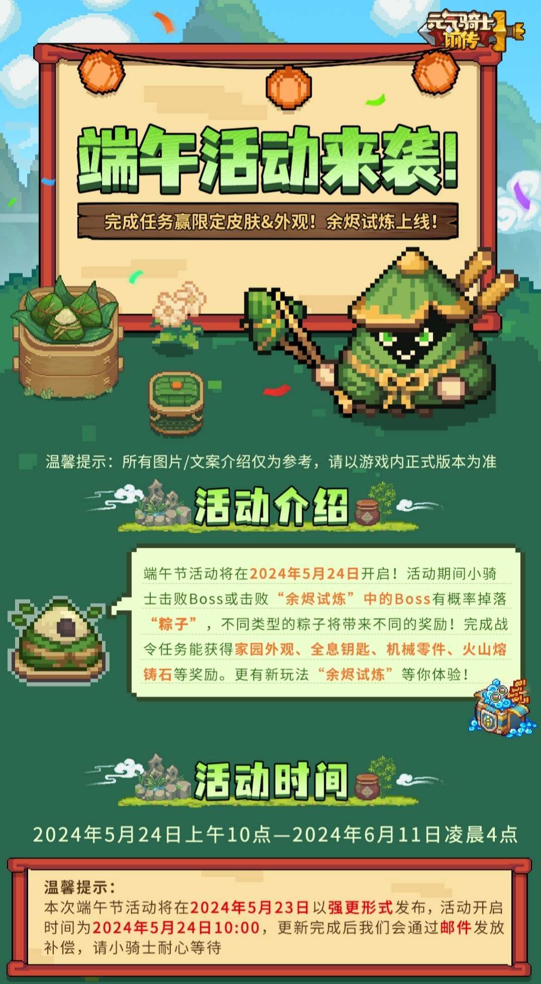 《元气骑士前传》端午节活动将于2024年5月24日上午10:00开启,详情请看下方图片