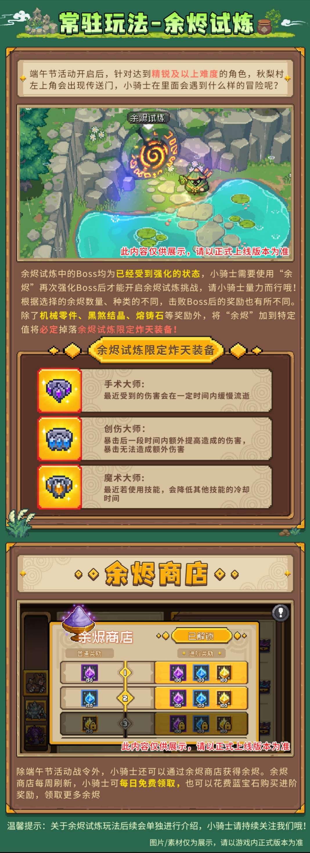 小骑士们,端午节活动要来啦,秋梨村又开始忙活起来了!限定皮肤、家园外观、新玩法“余烬试炼”将在端午节活动中和大家见面![打call]