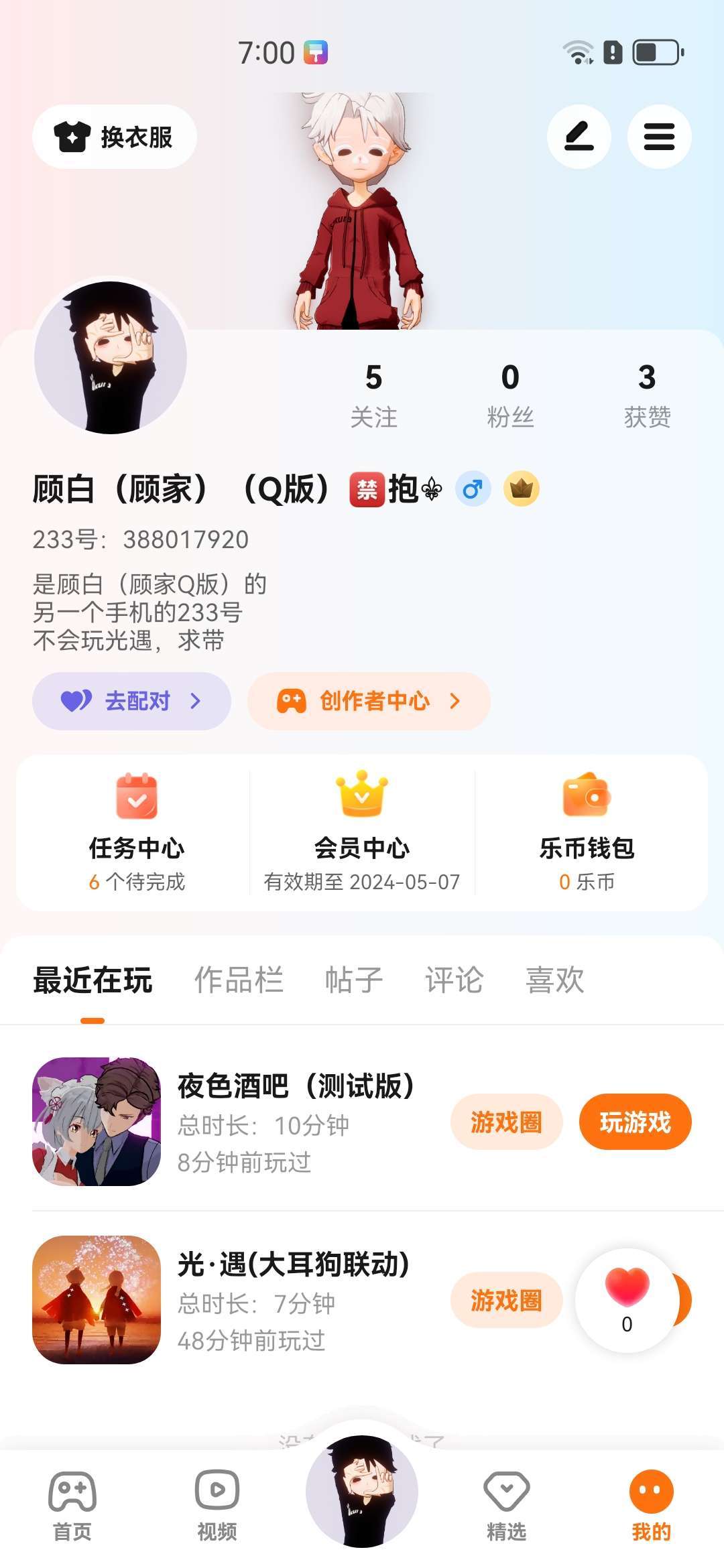 找大佬和俺玩 早上6点到7点8分 晚上玩 周末也玩
