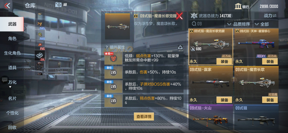 琵琶造型的09式狙-魔音长歌,是活动中最有国潮特色的武器之一。和AN94-四凶一样,它也可以随机生成4个挑战模式专属词条,助你在挑战模式中克敌制胜。追求极致词条属性的CFer可以多刷山海经,广撒网多捕捞,一定能刷到自己满意的属性!