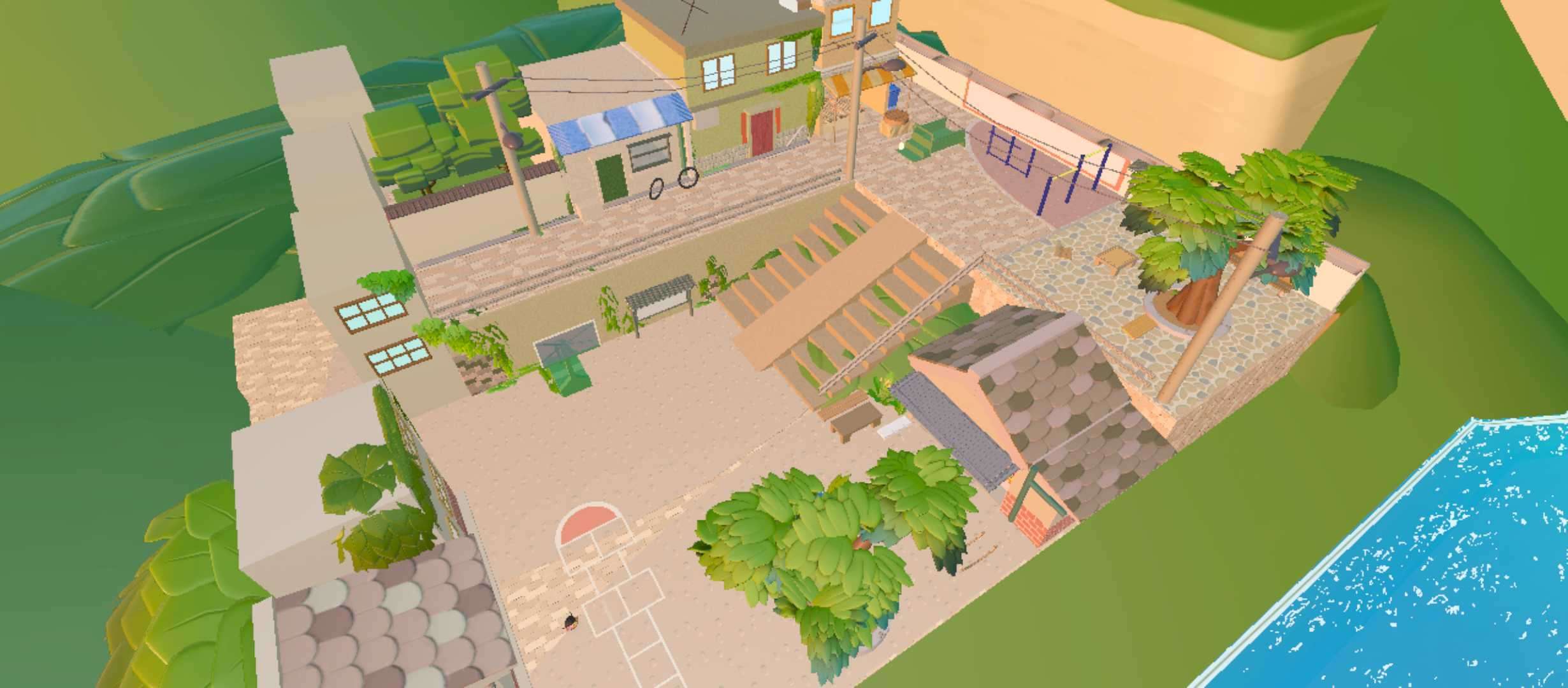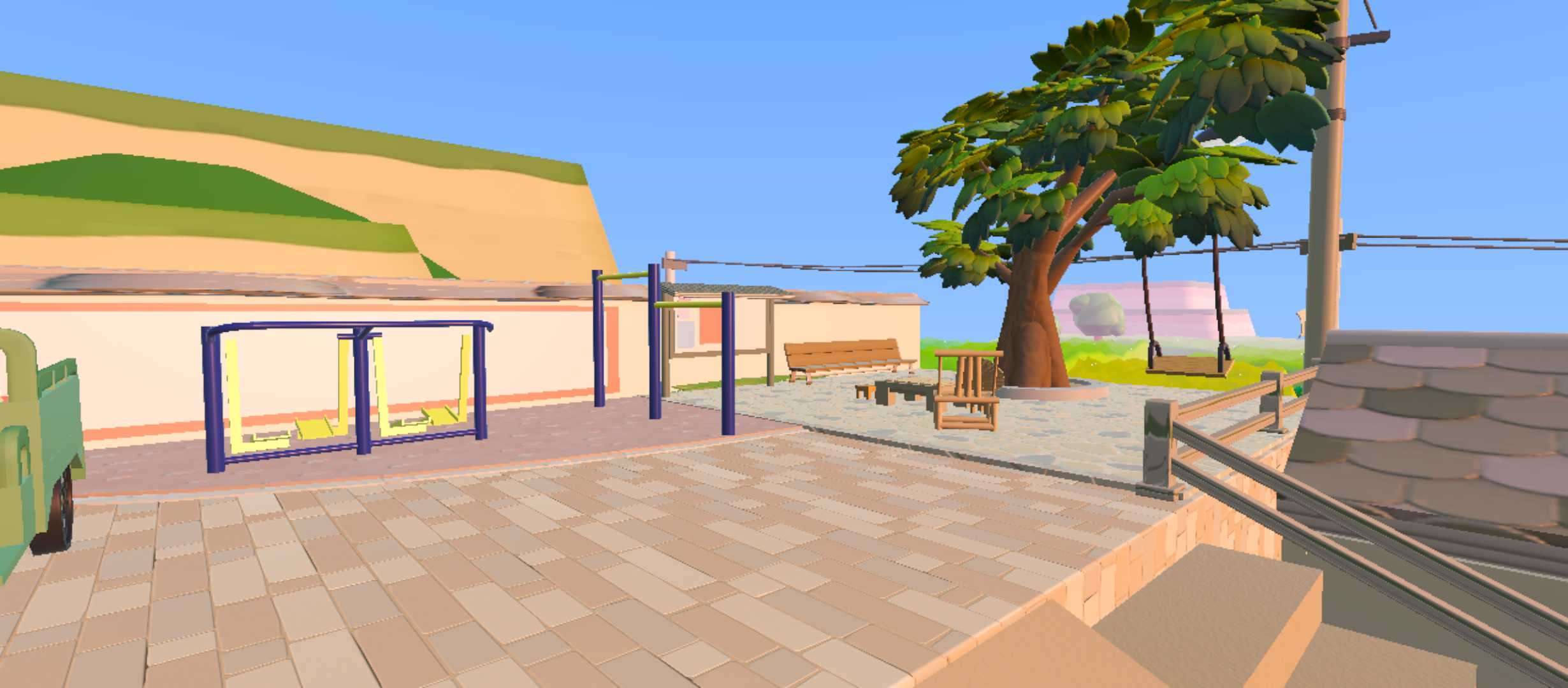 休闲的地方,可以在树下喝喝茶🍵下下棋⚫︎(但是别跑到那一边去掉下去就要重新做任务)树🌲上的秋千也是展现了90年代人们的智慧👍🏻旁边还有单杠和舒展脚的设施(我也不知道那叫啥)真是看着就想去享受享受