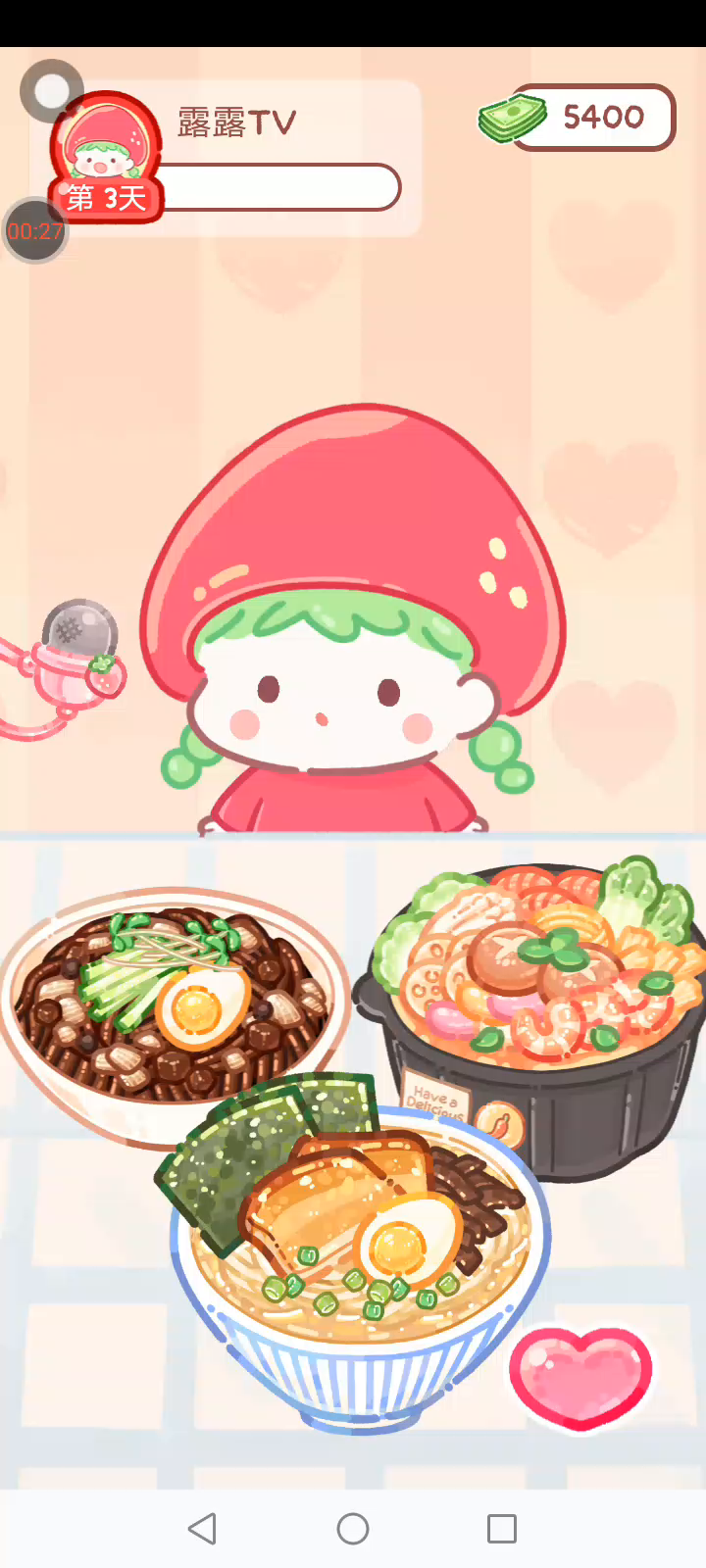 更新宠物!!! 「你进行草莓糖葫芦吃播的话,我就赞助100元。」 「脆口的声音太迷人了(°θ°)」 由于客人都被最近新开的许多糖葫芦店家抢走,曾经号称糖葫芦达人的父母因此卧病在床。 继承父母店面的主角露露开始糖葫芦吃播来宣传店面。 直到成为真正的糖葫芦达人那一天! 「今天我也要开始糖葫芦直播罗!( •o• )」 [串材料] 只有新鲜的水果的话,很难以一名吃播实况主存活下来。还要有松饼、地球软糖、青阳辣椒!利用奇特的材料制作糖葫芦吧。 [裹糖衣] 将材料串满竹签的话,就放进锅子搅动吧。唯有利用达人的秘法,才能裹出又薄又脆的糖衣。 [即时吃播] 咔哒咔哒!今天的吃播也大成功。热烈的聊天内容看起来反应也不错。看来得利用完成观众任务得到的赞助金来买新材料了! 来,准备好了吧?现在就马上挑战成为糖葫芦达人吧!