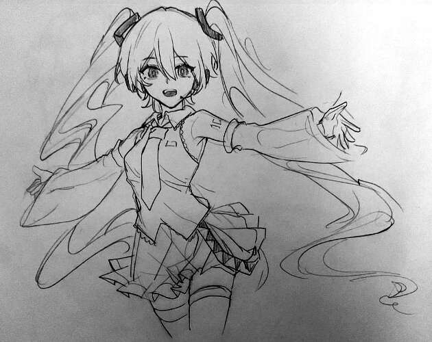 临摹了一篇初音,最近很喜欢初音qwq