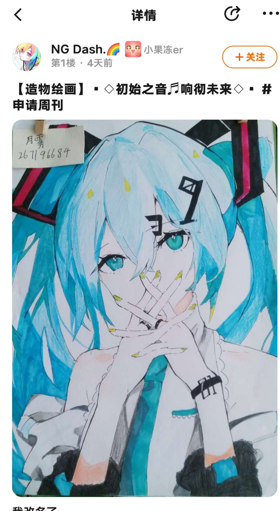 贴子点评:初音未来画的非常好看!可以加一下滤镜