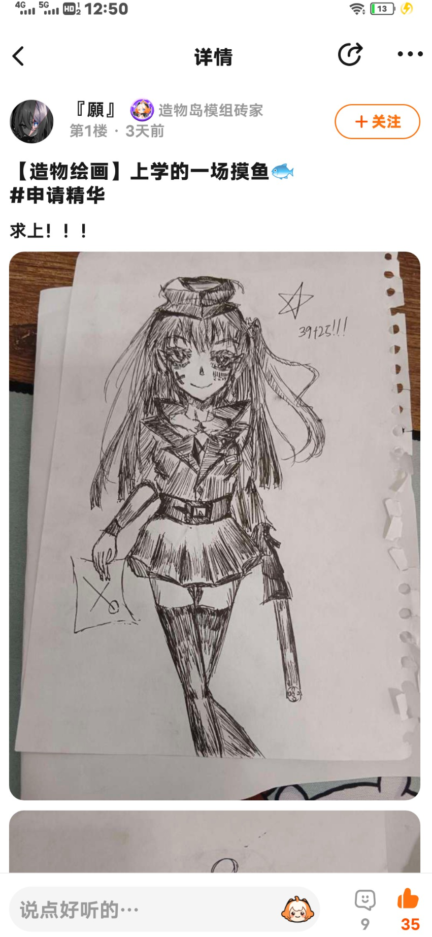 帖子点评:个人觉得画的还行,这位宝子画了很久,可以把衣服和头发改一下,也可以加一点滤镜。