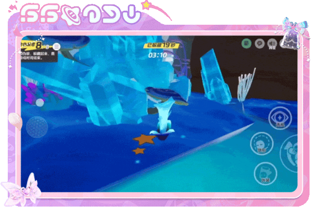 在冰矿深处,星宝们沿着雪坡一路跳跃