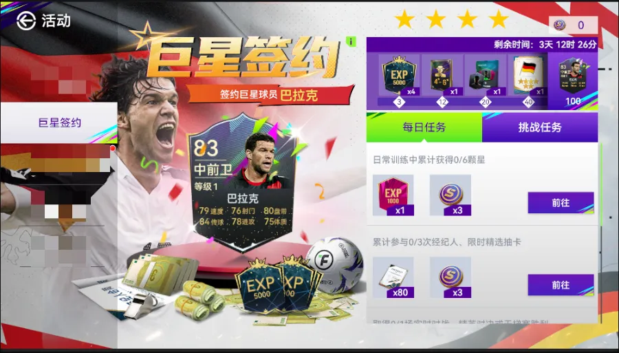 活动期间,完成指定任务即可获得活动积分,还有各种养成资源相送。达到指定积分还可获取超值大奖!经验卡、超稀有球探卡和83巴拉克等您来拿!活动规则如下: