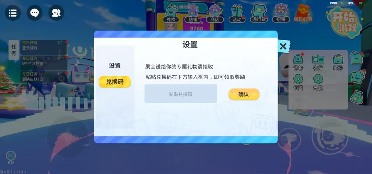 兑换码入口:进入游戏——设置——兑换码。