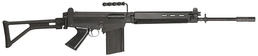 DSA SA58 FAL是美国DSA(David Selvaggio Arms)公司生产的FAL复制品,相较于原版FAL,SA58 FAL的各个组件更加现代化,比如选用了铝合金下机匣和改进的玻璃填充尼龙材料(glass-filled nylon),不仅能使用任何公制式FAL弹匣,还可以进行全自动射击。