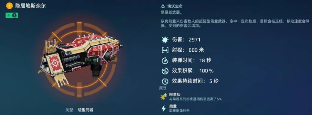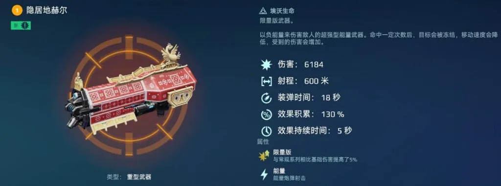 隐居地斯奈尔、腐化斯卡蒂、隐居地赫尔作为拥有持续伤害能力的负能量武器,不仅可以同时对近程、中程的对手造成威胁,还能够通过“冻结”属性,增加对手受到的传入伤害,辅助队友进行输出。