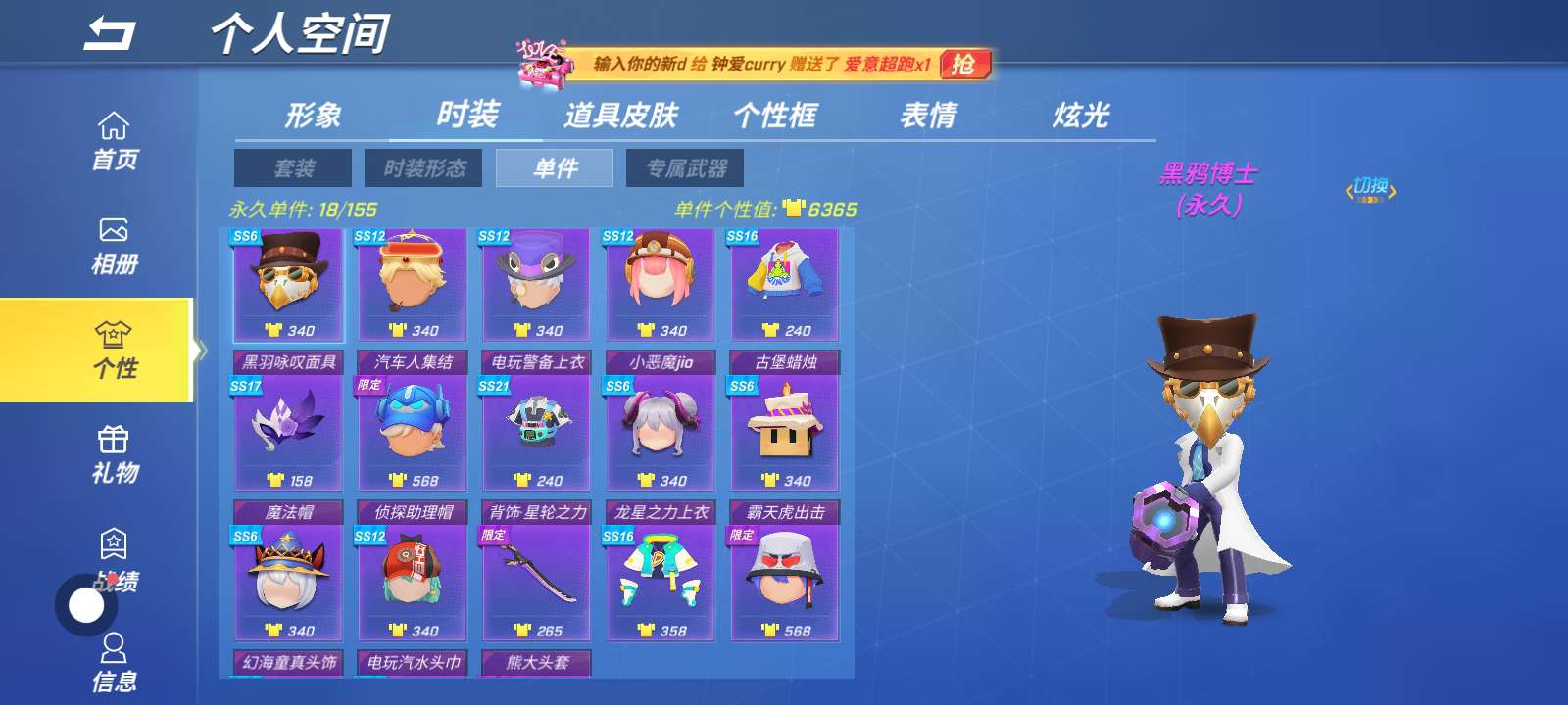 玩不下去了,这个号玩了三年多,12赛季垫了77抽,六赛季垫了40抽,16赛季垫了17抽,幻想造物还留了四抽,另一个(抽星耀角色的,忘了具体叫什么)还留了将近40抽,热度值30.5万,送礼值22.47万,想要的加我