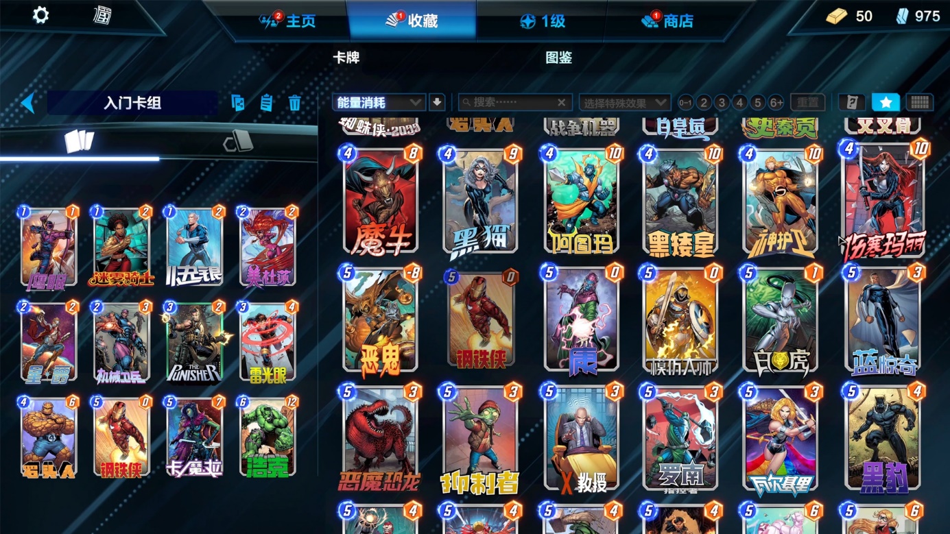 玩法:通过【蚁人】【鹰眼】等低费用卡牌迅速铺场,再用【卡扎尔】【蓝惊奇】等群体加战力卡牌扩大优势。