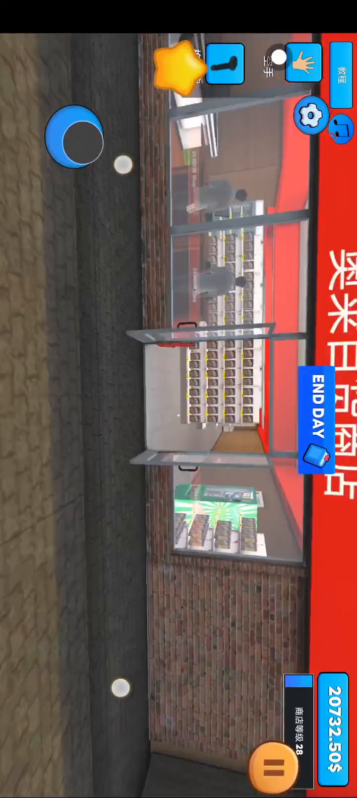 14.店里货物的种类决定了你的客流量,比如当我店里只卖豌豆罐头,我一天的客流量只有18只赚了900多块钱,但是我把游戏里能买的货物都买上了,并且摆上了,一天来了48位顾客(开了营业加速,在一个黄色的星星里)赚了2000块