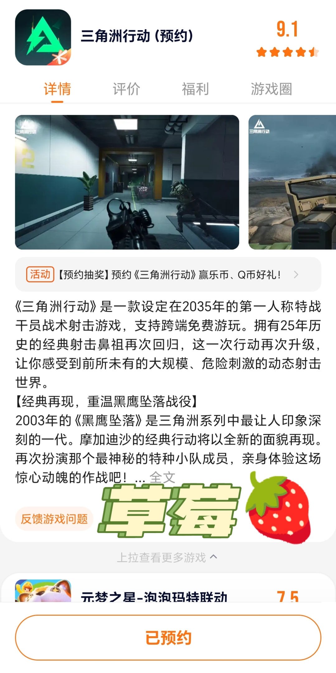1.首先在下方为《三角洲行动》点击预约游戏