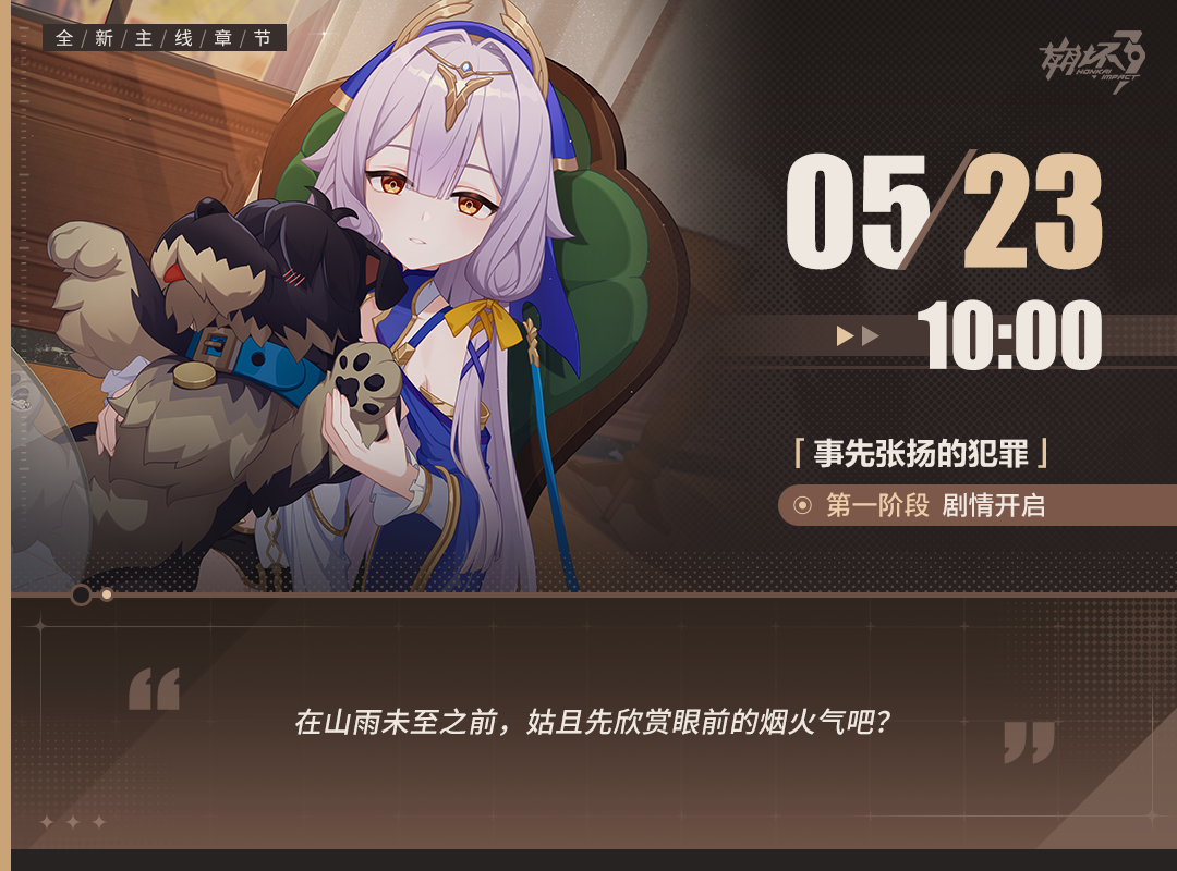 马克兔温馨提示,主线第二部第三章「事先张扬的犯罪」第一阶段剧情现已开放。舰长参与探索并完成主线相关任务,将可获取水晶、根源棱镜、远古意志等奖励!