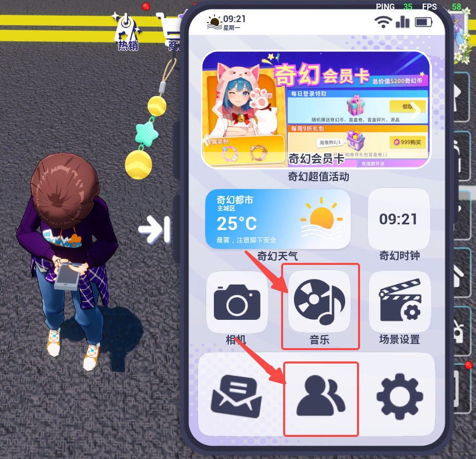 点击主界面【手机】-按钮【好友】【音乐】,就可以加好友和听歌啦
