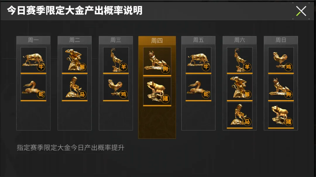 如此多的生肖大金,该怎么收集呢?别担心!多种赛季大金获取方式保证无论你是哪种玩家,都能集齐十二款限定生肖大金!