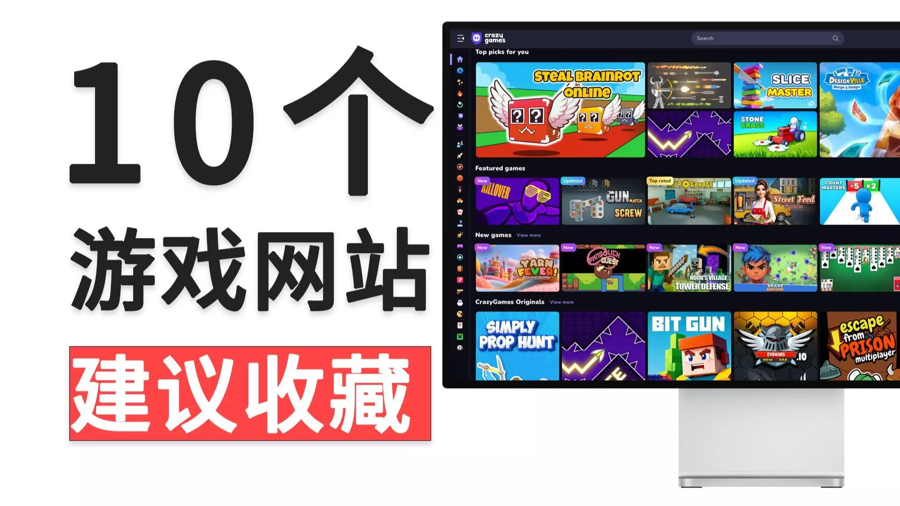 本期视频挖出了10个压箱底的免费游戏网站 无需下载、点开即玩 1. Poki:成年人的摸鱼圣地,高质量游戏点开即玩。 2. 某音小游戏无广告:热门小程序游戏网页…