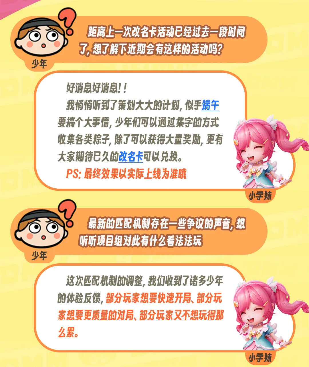 学妹有话说!改名卡、匹配、键位等热门问题解答~