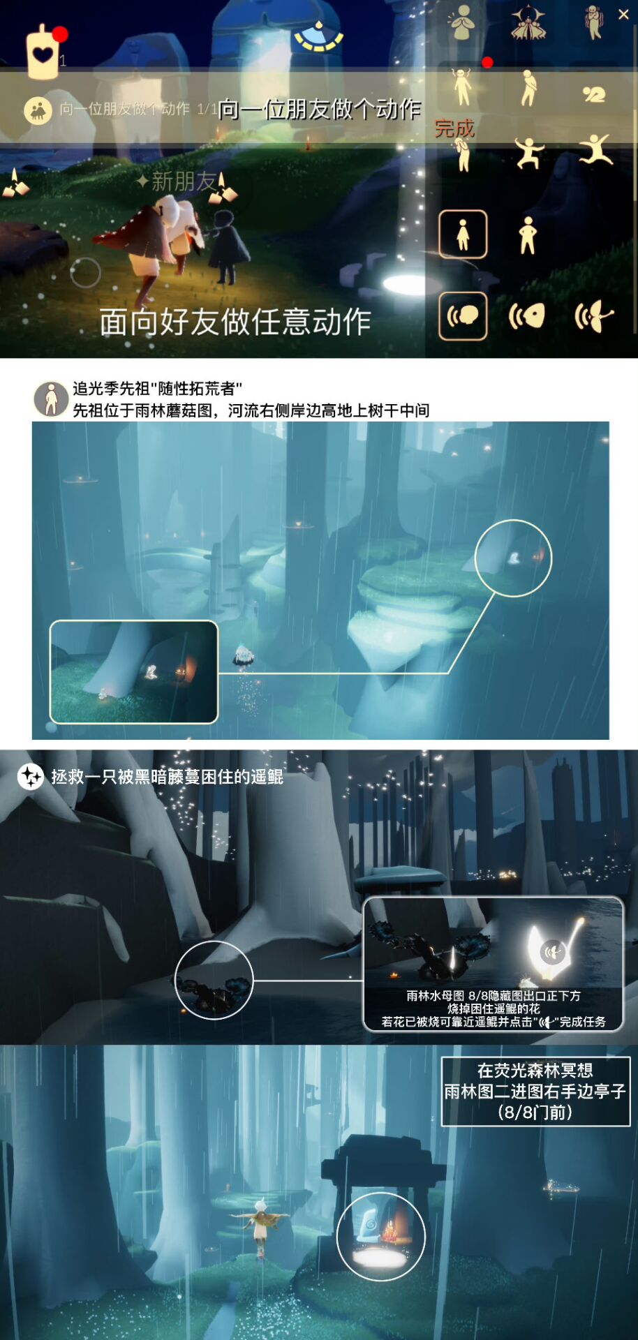 「在荧光森林冥想」在雨林荧光水母图一进去右手边的亭子(8/8入口门前)内石碑前光圈处打坐并留言