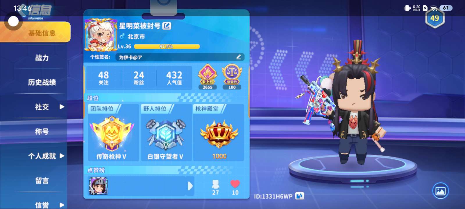 这我号,加个好友,直接在游戏里加就行。不怎么打野人