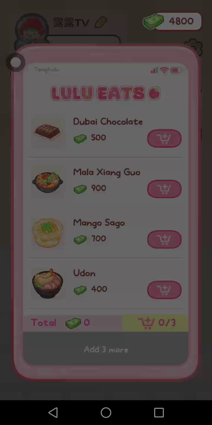 更新宠物!!! 「你进行草莓糖葫芦吃播的话,我就赞助100元。」 「脆口的声音太迷人了(°θ°)」 由于客人都被最近新开的许多糖葫芦店家抢走,曾经号称糖葫芦达人的父母因此卧病在床。 继承父母店面的主角露露开始糖葫芦吃播来宣传店面。 直到成为真正的糖葫芦达人那一天! 「今天我也要开始糖葫芦直播罗!( •o• )」 [串材料] 只有新鲜的水果的话,很难以一名吃播实况主存活下来。还要有松饼、地球软糖、青阳辣椒!利用奇特的材料制作糖葫芦吧。 [裹糖衣] 将材料串满竹签的话,就放进锅子搅动吧。唯有利用达人的秘法,才能裹出又薄又脆的糖衣。 [即时吃播] 咔哒咔哒!今天的吃播也大成功。热烈的聊天内容看起来反应也不错。看来得利用完成观众任务得到的赞助金来买新材料了! 来,准备好了吧?现在就马上挑战成为糖葫芦达人吧!