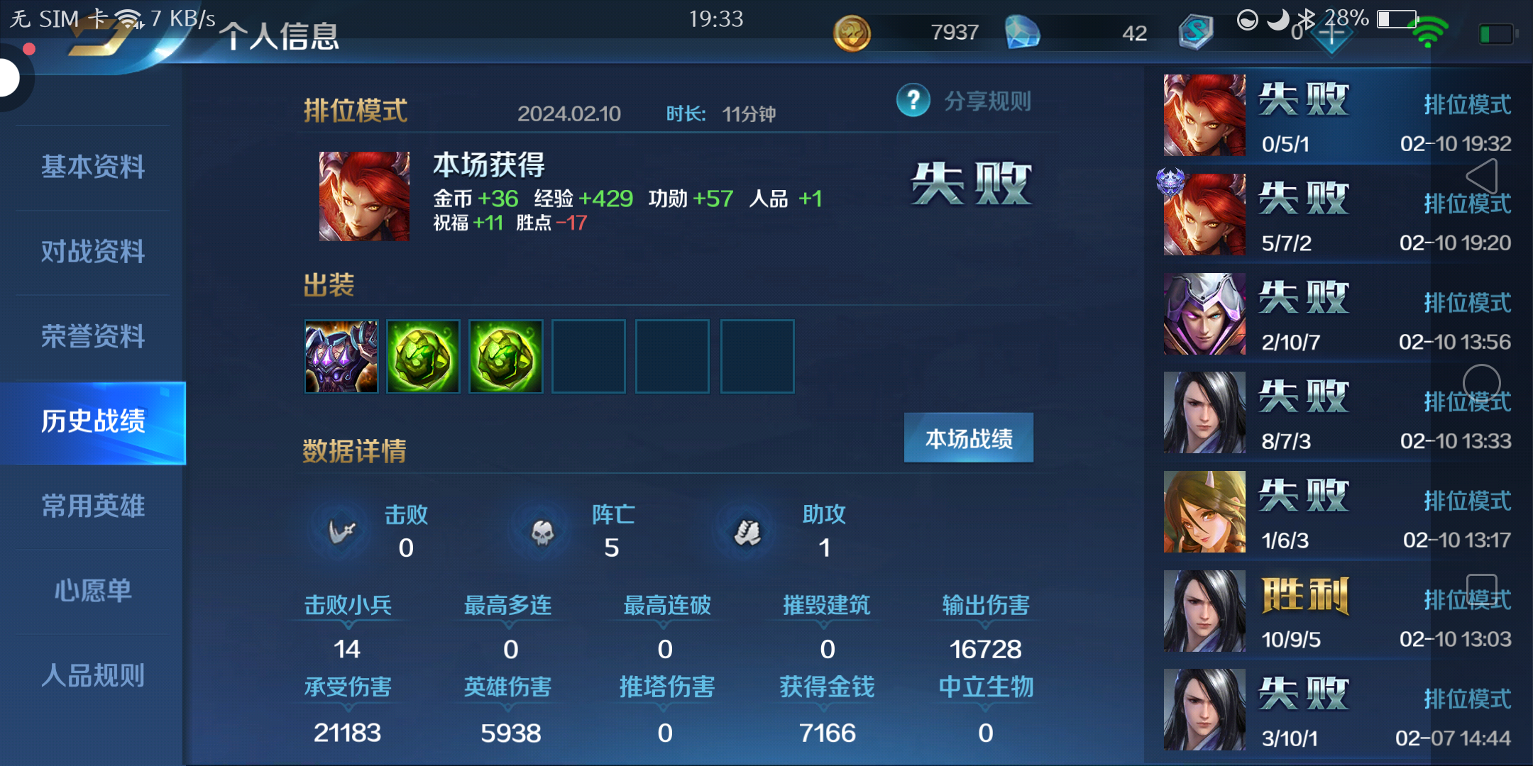 今天五连跪,只赢了一局。