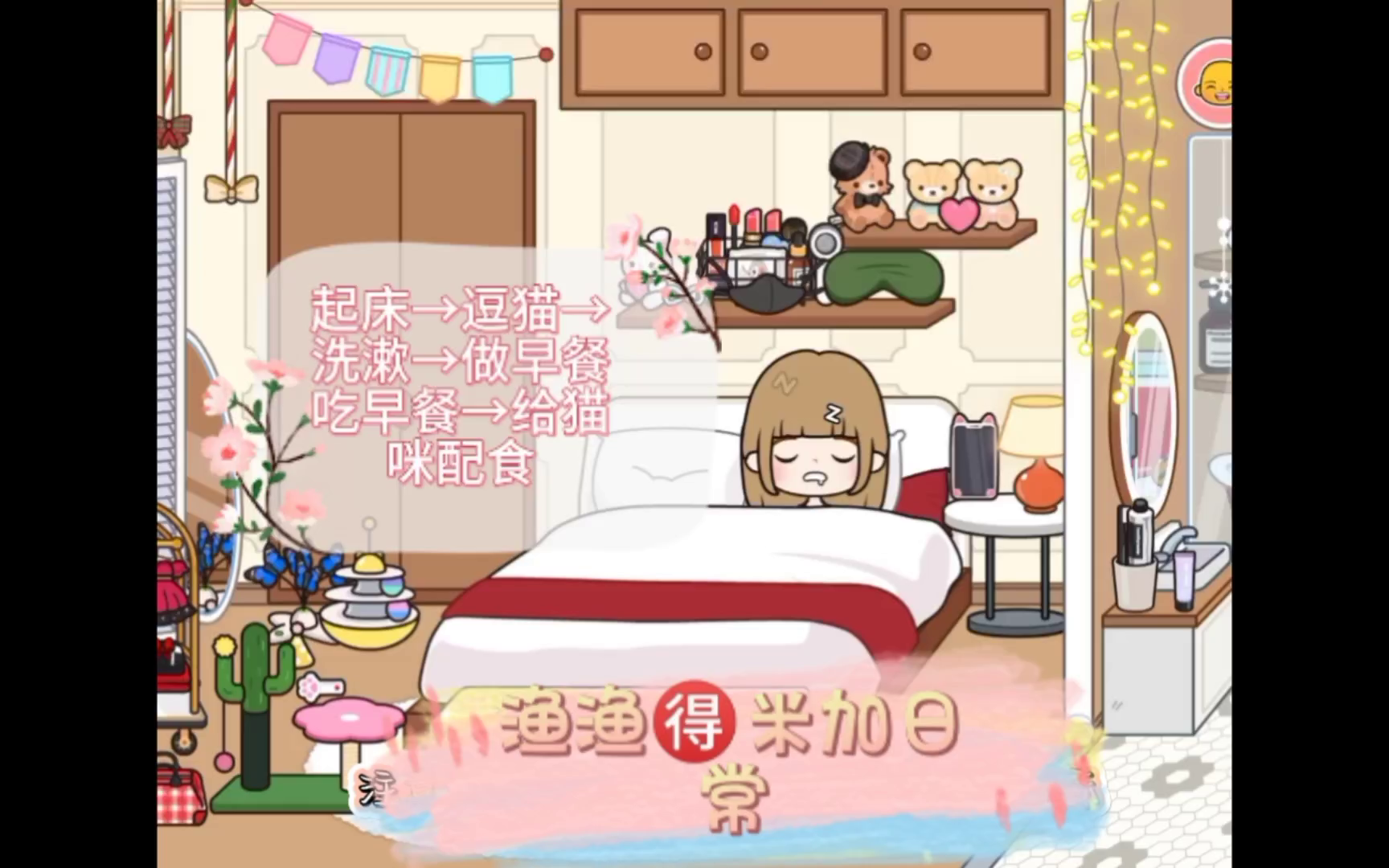 渔渔🉐米加日常 起床→逗猫→洗漱→做早餐吃早餐→给猫咪配食