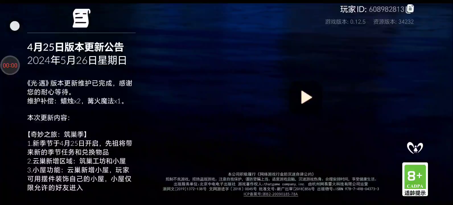 《光·遇》筑巢季于4月25日更新,主要更新内容:新季节「筑巢季」开启,原木家具、设计师套装和光之子试衣手办上线。 【游戏最低需要安卓8.0或更高的系统支持,才可正常安装体验《光·遇》,具体要求前往FAQ帖子查看】 《光·遇》是制作人陈星汉历时七年的全新力作。在《光·遇》中,你将开启一段最暖心纯粹的社交冒险体验。清新治愈的唯美画风,不期而遇的真挚美好,柔美的风云间充满着温暖与感动,唤醒你心中最柔软的部分。这是一场拥抱自由和温暖的云端之旅。与你心爱的人们携手,在这座旷世的天空王国中翱翔,爱的力量将支持你一路前行。