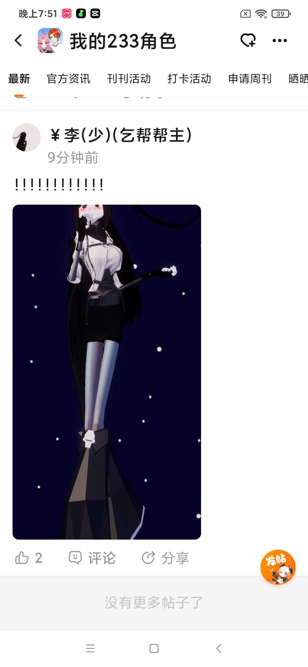 刷帖子居然刷到底了,今日帖挺少