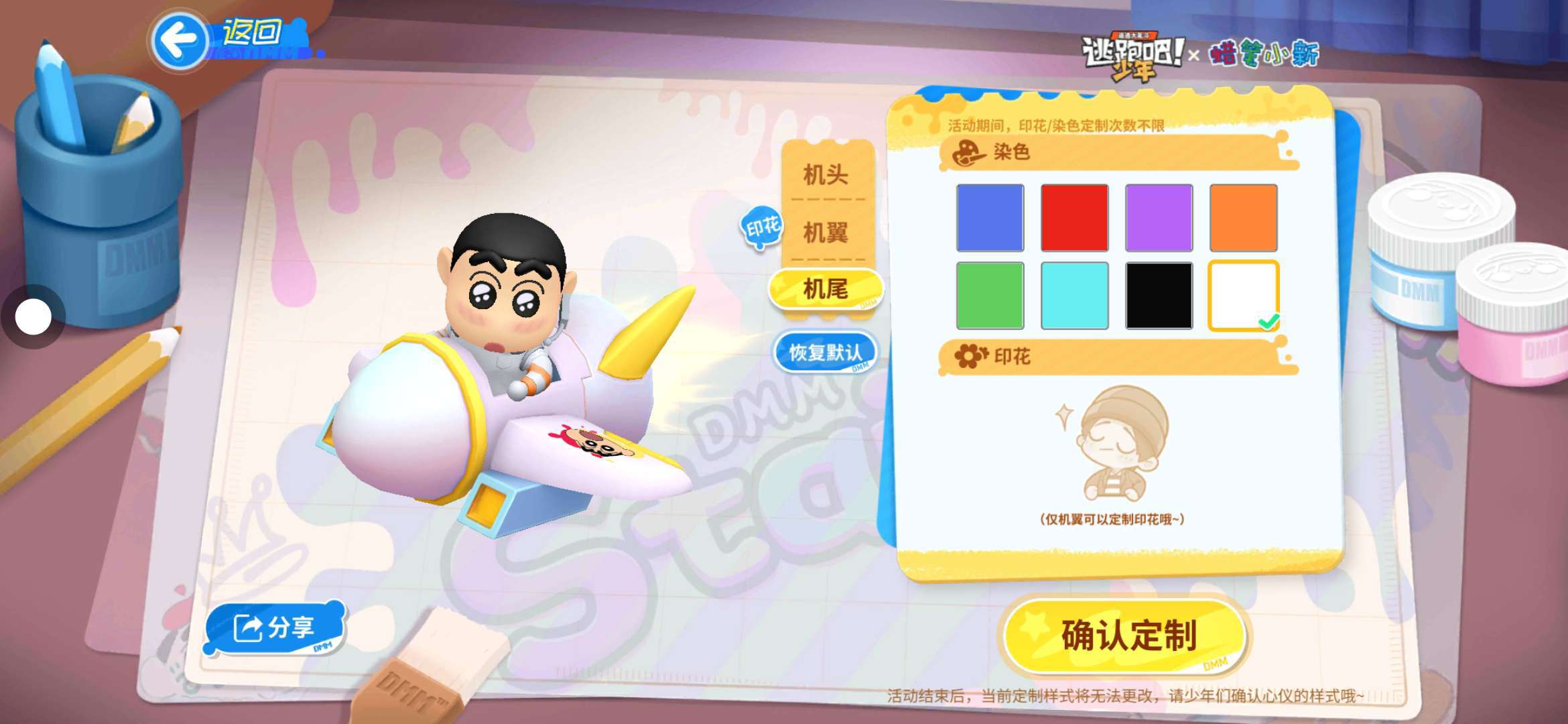 《逃跑吧!少年》联动蜡笔小新啦!完成任务,免费获取首款自由定制小灰机:小新冲呀~下载游戏并填写我的邀请码:276240250,一起来玩吧~