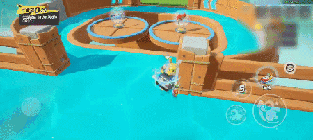 如果选择从转盘上通过,就要看准时机跳起,避开中间两个圆盘中的空缺;在中间道路拥挤时,选择两旁道路稳妥前进也不错。冰道上依然会有凸起的地面,星宝路过凸起时可以稍作休息调整方向,然后跳跃+前扑快速前进~