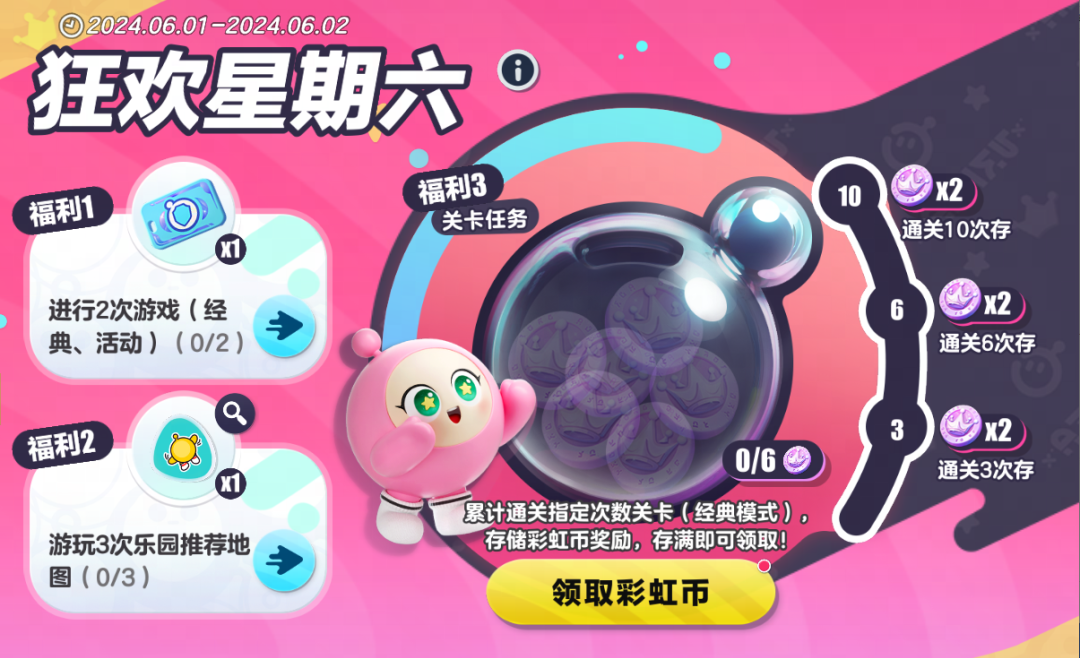 彩虹币*6和巅峰派对保护卡*1