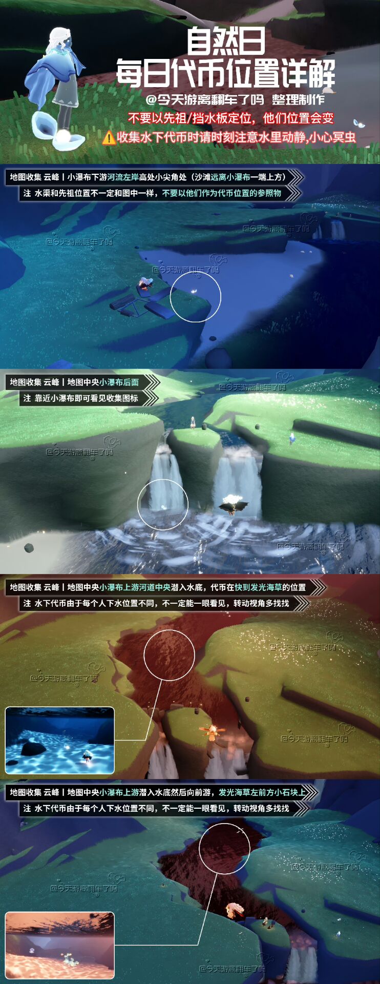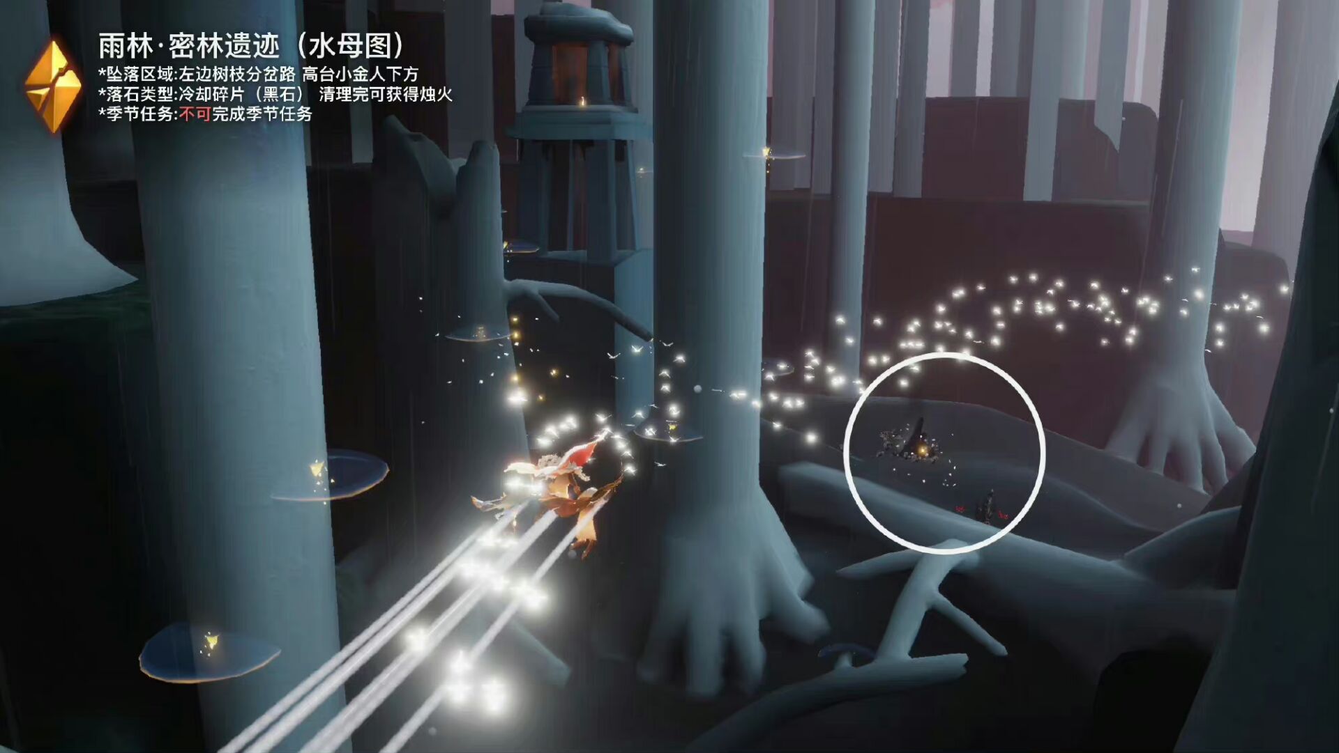 特别机制:云峰落石。潜入水底拔起落石周围的黑暗植物,然后在河堤前烧掉它们。清理可获得烛火(每日可获得一次)