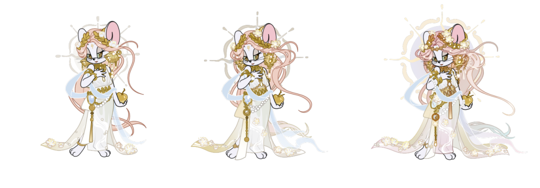 整个皮肤色彩以白金辅以浅粉色为主,出场则让神女自壁画中走出,仿佛画中神女降世。