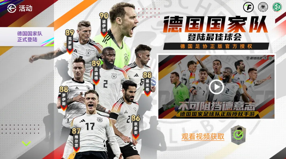 德国国家队正式登陆《最佳球会》,观看视频,即可领取83德国球员哈弗茨。