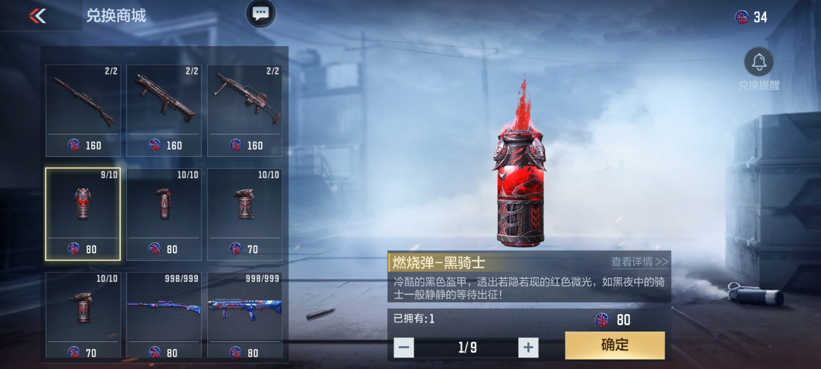 最后当然是价格方面,燃烧弹-黑骑士上架于本次能量核心夺宝,需要80兑换币即可保底兑换。