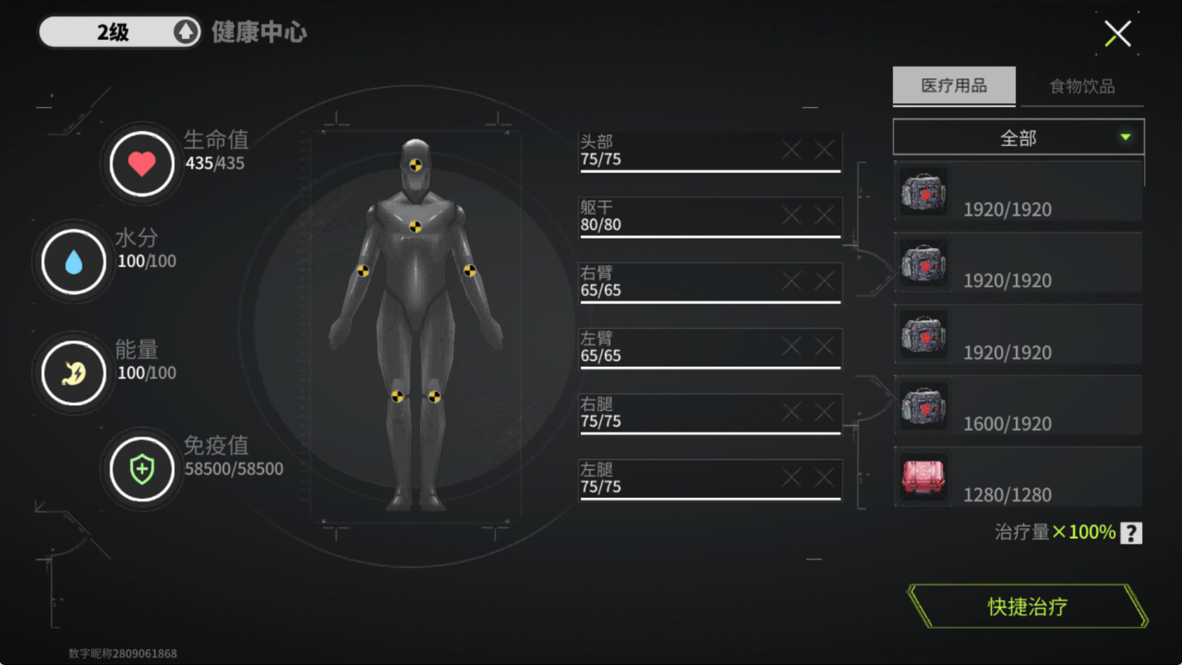 健康中心需要的材料均为医药用品耗材,物资分别需要棉签,针筒,输血针。后期还需要血压计,血糖仪和心脏起搏器。健康中心等级提升会增加人物状态的恢复速度,提升健康值和生命值恢复的速度,前期推荐升到2级。棉签可以再巴夫工厂废水池等有医疗包的地方尝试搜索,后期富裕了再考虑给健康中心升到3级以上。