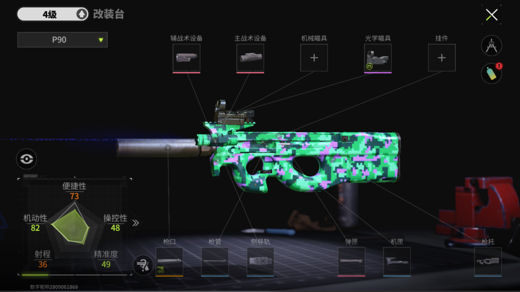 武器的选择就比较多样了,近战不开镜枪可以选择AK,或者选配MDR,如果习惯不开镜,就带减后座,加移速恢复耐力的配件。冲锋枪可以选择不开镜满配p90,开镜选vector或者mp5,根据开镜情况平衡配件即可,所有的枪都需要根据自己的手感来选择,最重要的配件就是枪口了,要尽量从寄卖市场购买后改装上。