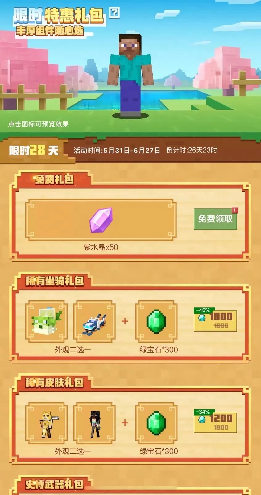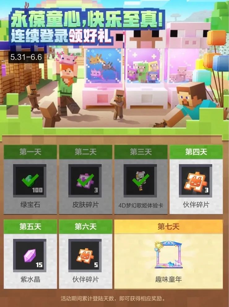 六一活动福利多多~希望各位冒险家能够在方块世界里重拾童趣,再现童真!