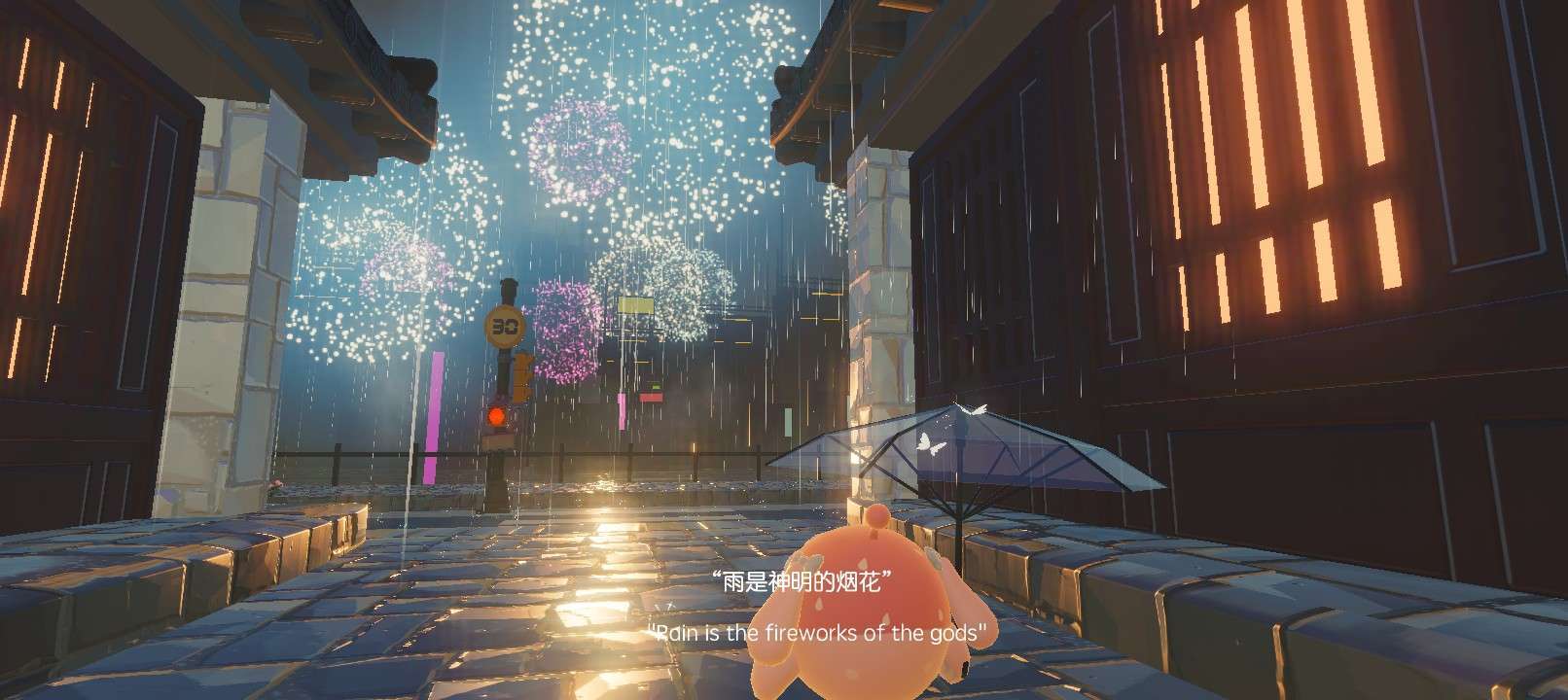 一眨眼,我们来到了繁华靓丽的城市,雨滴缓缓滑落,打破了寂静的夜晚,为这座城市披上了一层神秘的面纱……
