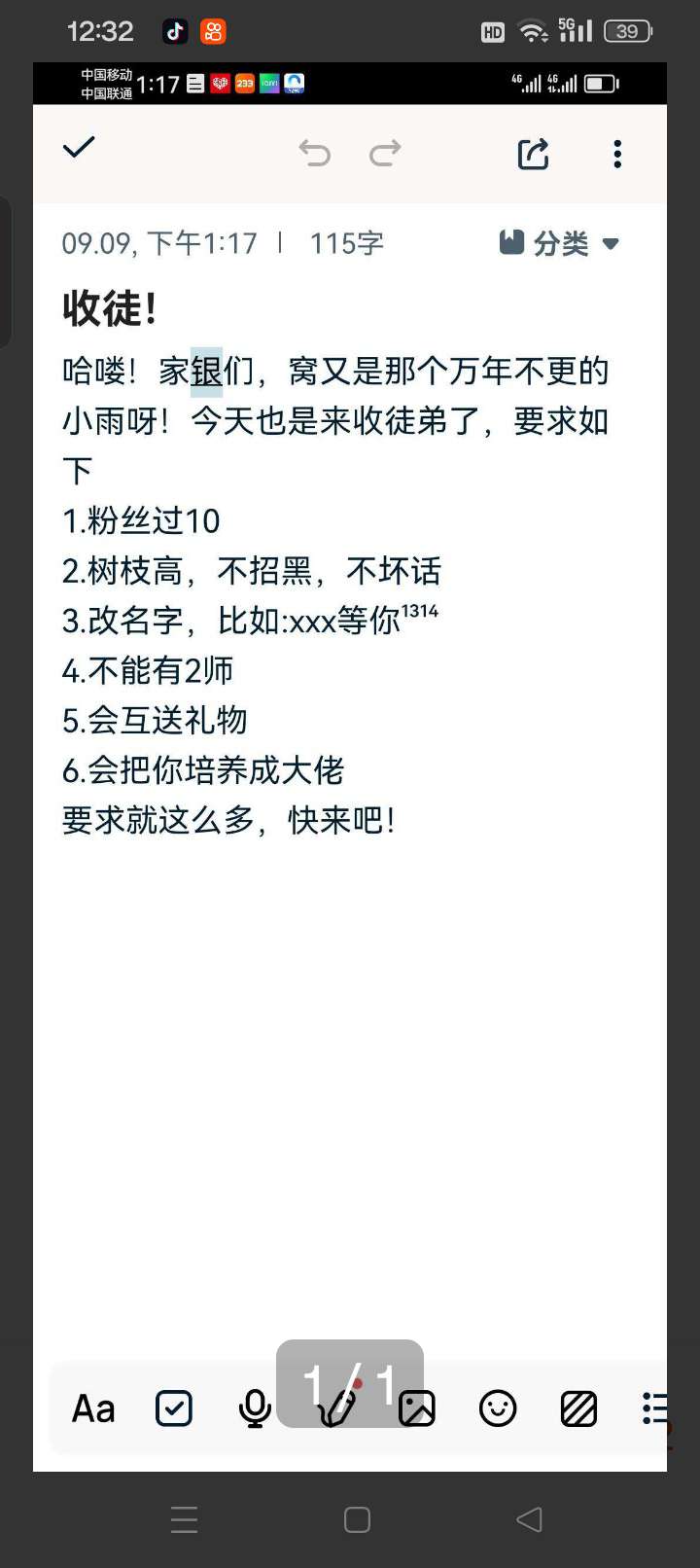 收徒啦!快来申请吧!