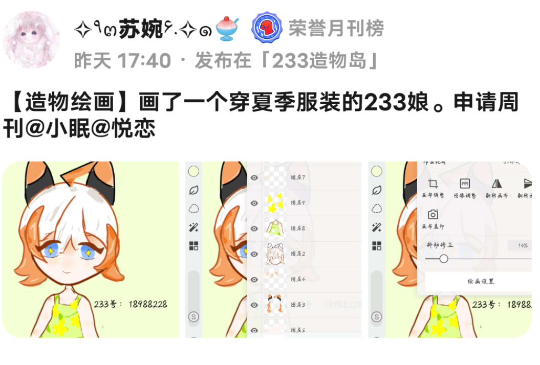 贴子点评: 画的233娘很好看,但是感觉比例有点不对,希望宝贝以后画的更好看