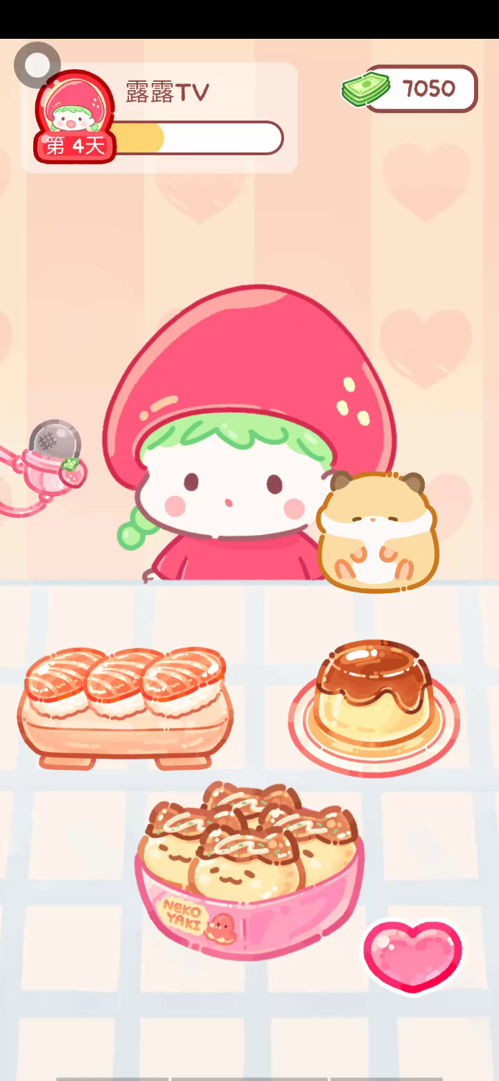 更新宠物!!! 「你进行草莓糖葫芦吃播的话,我就赞助100元。」 「脆口的声音太迷人了(°θ°)」 由于客人都被最近新开的许多糖葫芦店家抢走,曾经号称糖葫芦达人的父母因此卧病在床。 继承父母店面的主角露露开始糖葫芦吃播来宣传店面。 直到成为真正的糖葫芦达人那一天! 「今天我也要开始糖葫芦直播罗!( •o• )」 [串材料] 只有新鲜的水果的话,很难以一名吃播实况主存活下来。还要有松饼、地球软糖、青阳辣椒!利用奇特的材料制作糖葫芦吧。 [裹糖衣] 将材料串满竹签的话,就放进锅子搅动吧。唯有利用达人的秘法,才能裹出又薄又脆的糖衣。 [即时吃播] 咔哒咔哒!今天的吃播也大成功。热烈的聊天内容看起来反应也不错。看来得利用完成观众任务得到的赞助金来买新材料了! 来,准备好了吧?现在就马上挑战成为糖葫芦达人吧!
