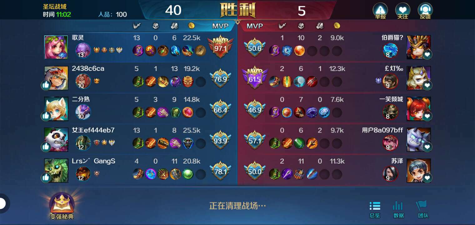 对战里的,没想到我玩辅助尽然是100分