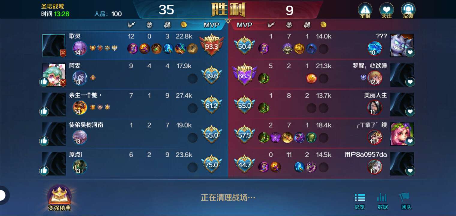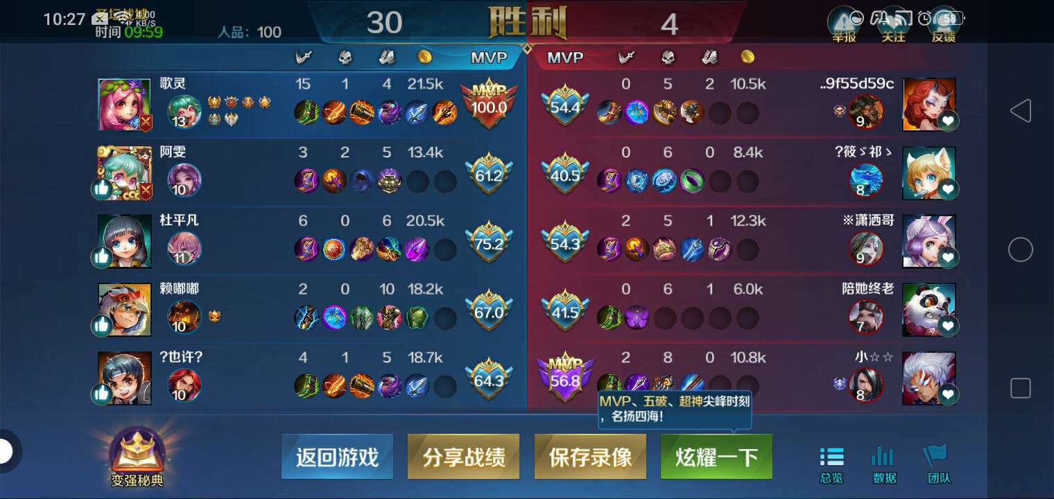 家人们,挺奇怪的。都是一百分,为啥我(歌灵)不是MVP?