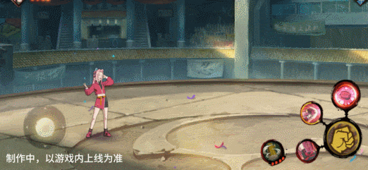 赛事小樱将脑中的幻想实体化,巨大化小樱一起跟随节奏依次挥拳攻击,最后蓄力一拳打出爆炸伤害将敌人终结。