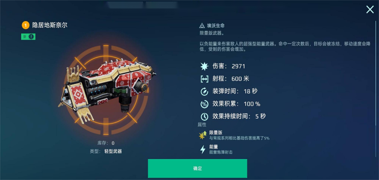 “冻结”系武器在600m以内的中距离作战中,能够有效降低自身被暴露在敌人视野中的风险,从而发挥出巨大优势;当敌人潜入或是利用突进技能闯入友方身边时,配备“冻结”系武器的机甲,依赖持续伤害的能力特性,也能在短时间内的近距离对抗中势均力敌。