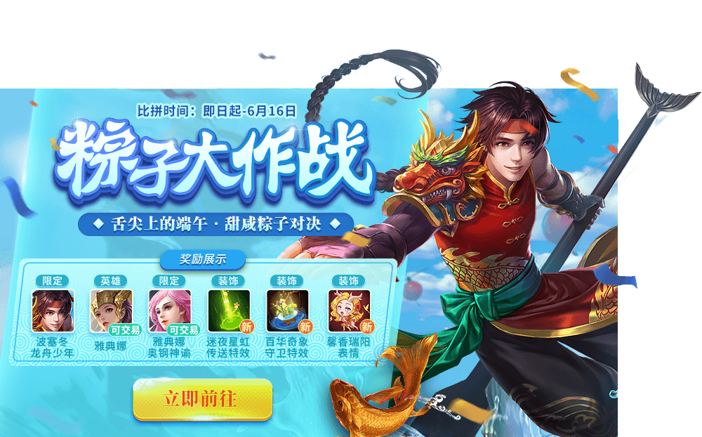 甜的还是咸的?粽子大作战即将开启!通过每日登录、对局点赞、组队完成对局等任务获得糯米道具。