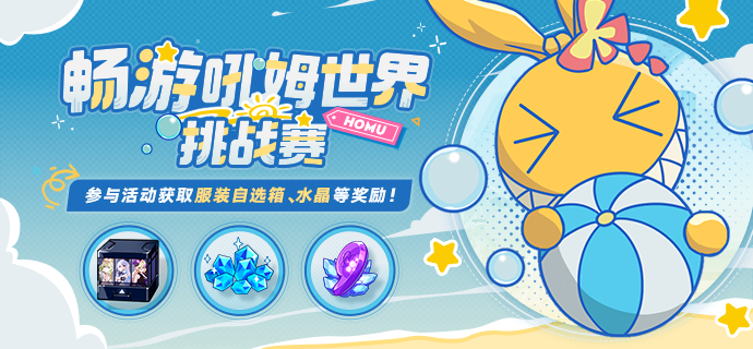 「畅游吼姆世界-挑战赛」开启,一起来联机闯关,争取获得更高名次!参与活动可获取「星夜闪耀」服装自选箱、水晶、远古意志等奖励~